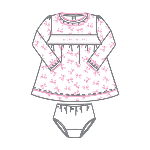 Baby Bows Smocked Ruffle L/S Dress Set: Pink