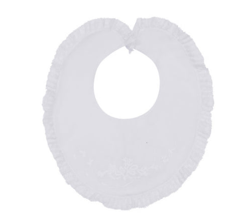 White Floral Bow Embroidered Lace Bib by Feltman Bros.