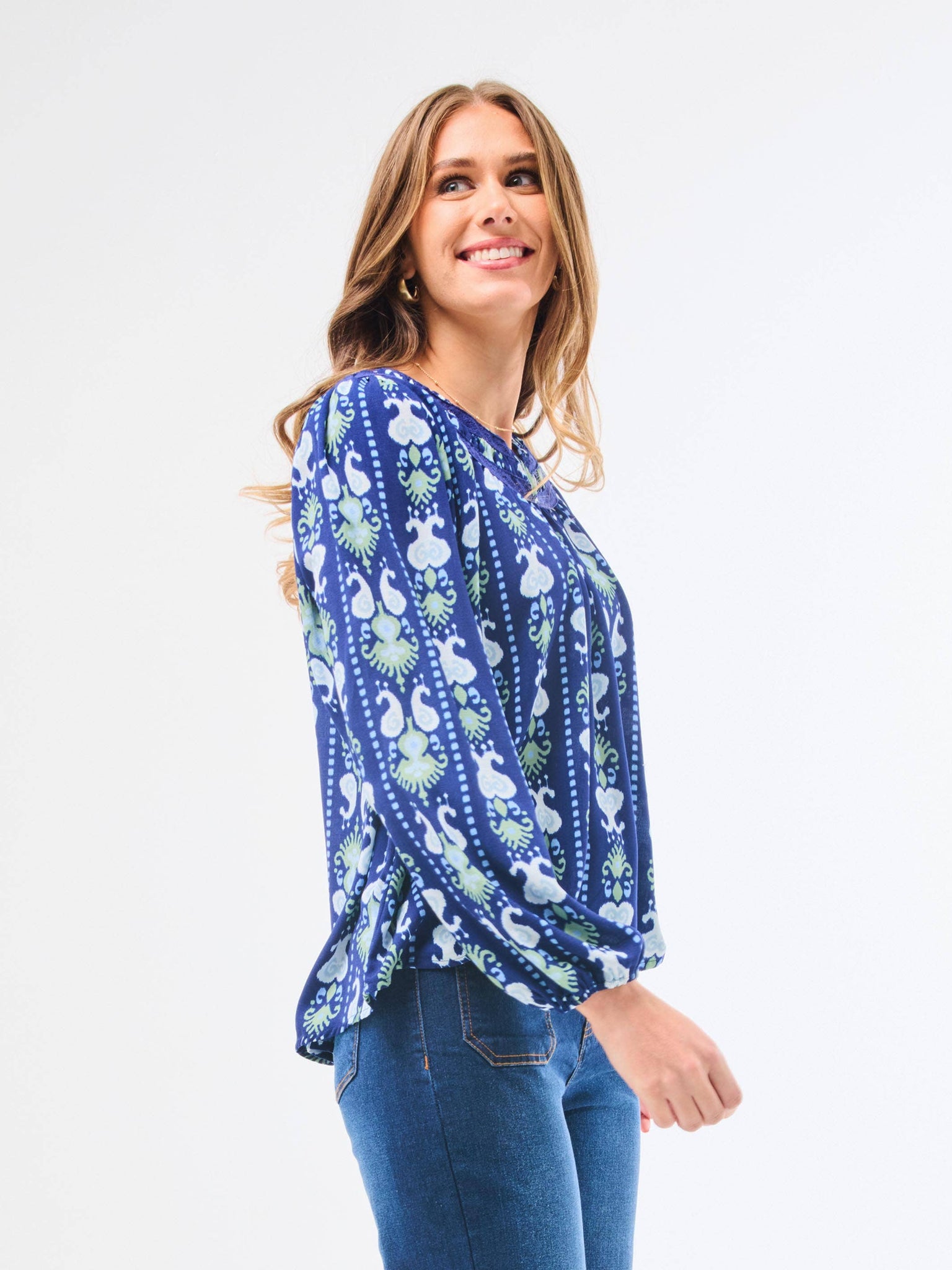 The Janelle Top is a sophisticated blend of classic charm and contemporary design. The intricate crochet lace trim details elevate the look, while the notched neckline adds a flattering touch. Long sleeves with elastic cuffs provide a comfortable, feminine fit that’s perfect for any occasion.