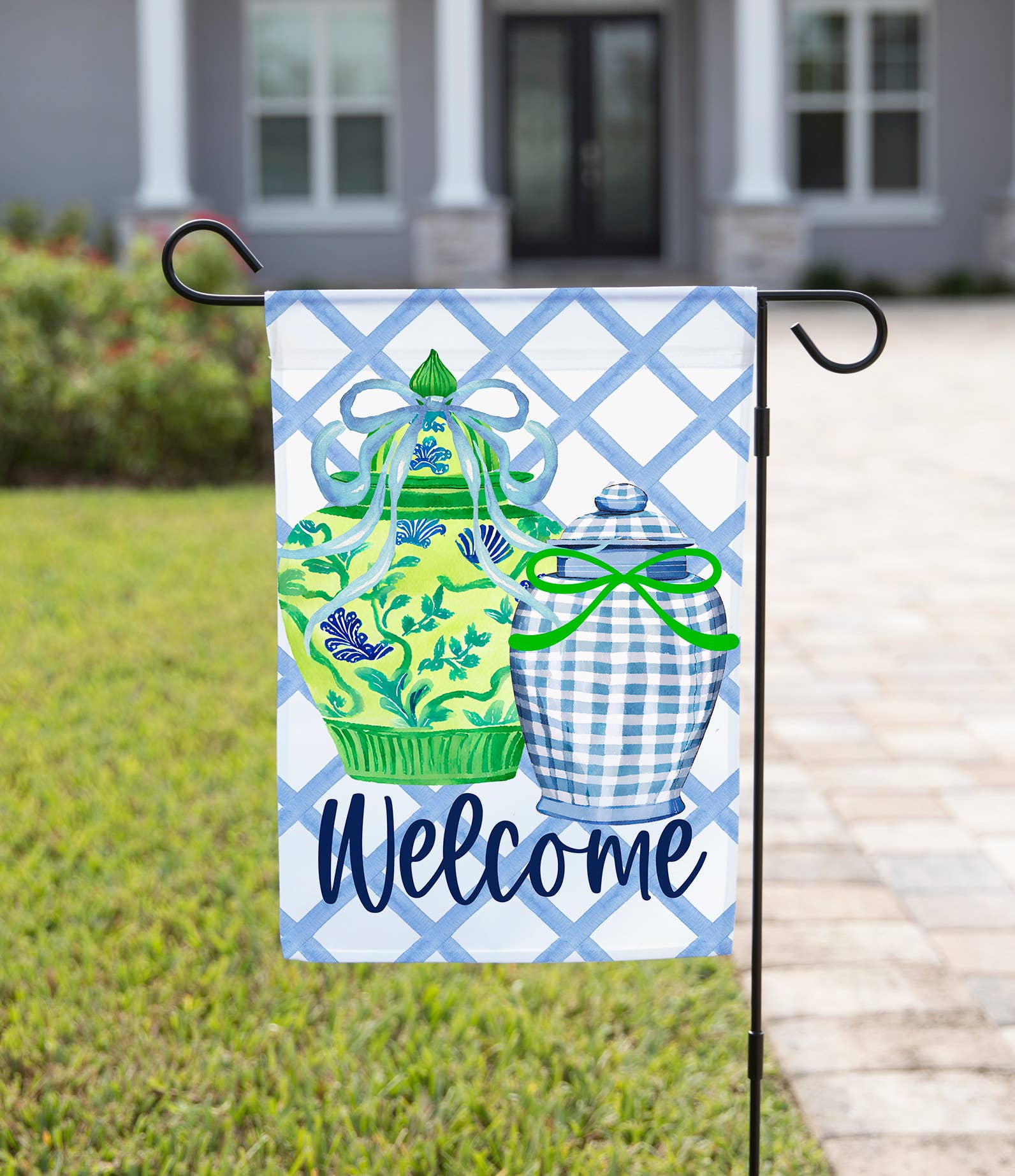 Spring Garden Flag - Green Ginger Jars: 12" x 18" - Double-Sided