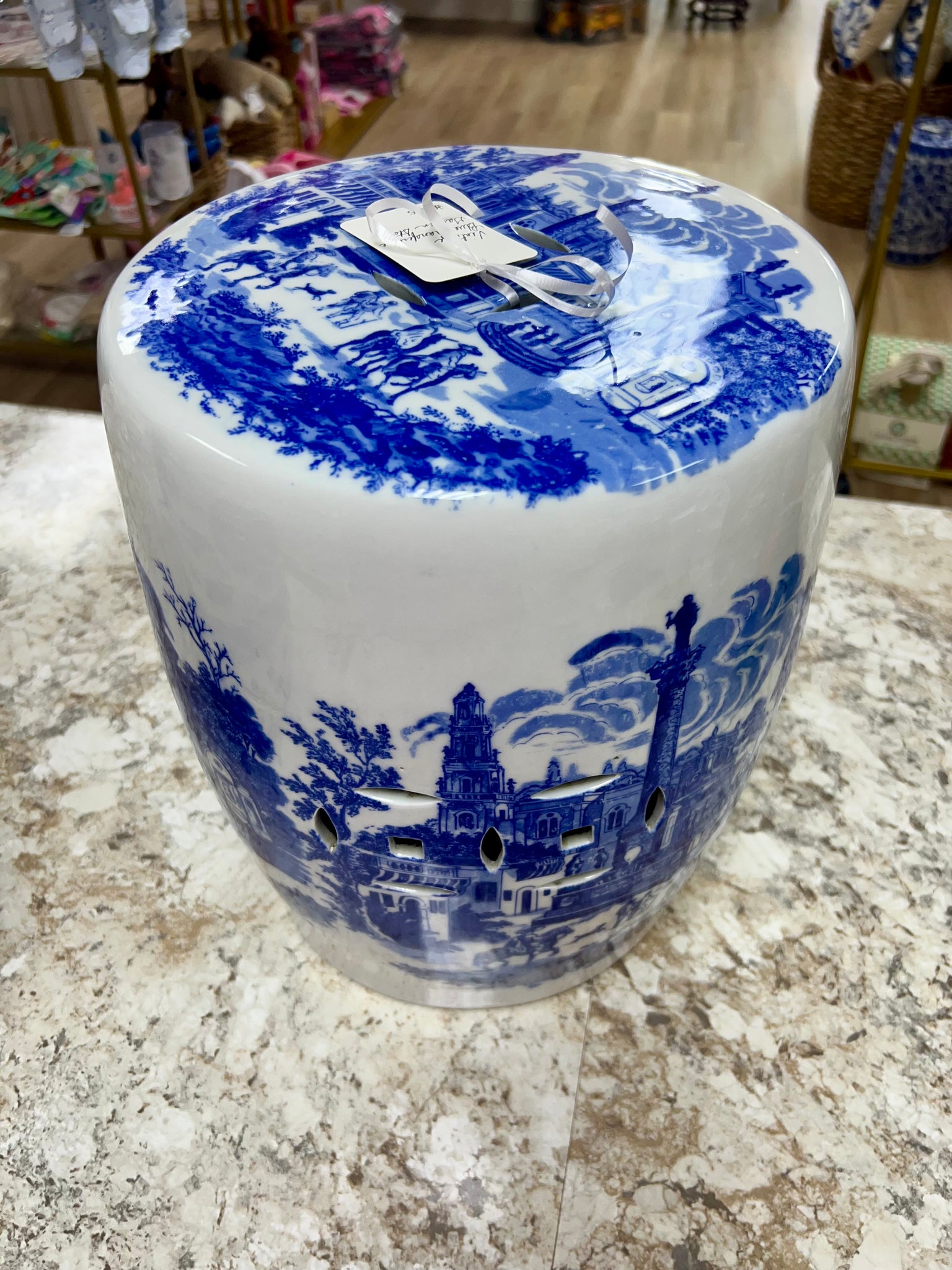 Vintage Blue Transfer ware Garden Stool-local pick up only 14 tall x 10.25 wide