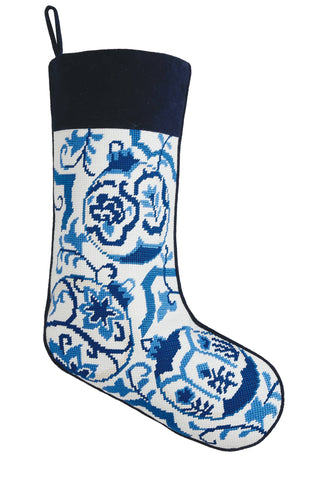 Chinoiserie Ornament Embroidered Needlepoint Stocking