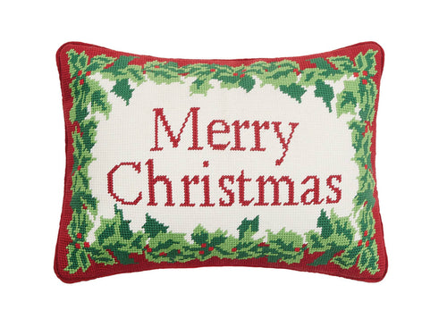 Merry Christmas Embroidered Needlepoint Pillow 10x14