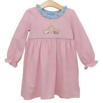 Christmas Smocked Dress with Green Bow and Tree Embroidery