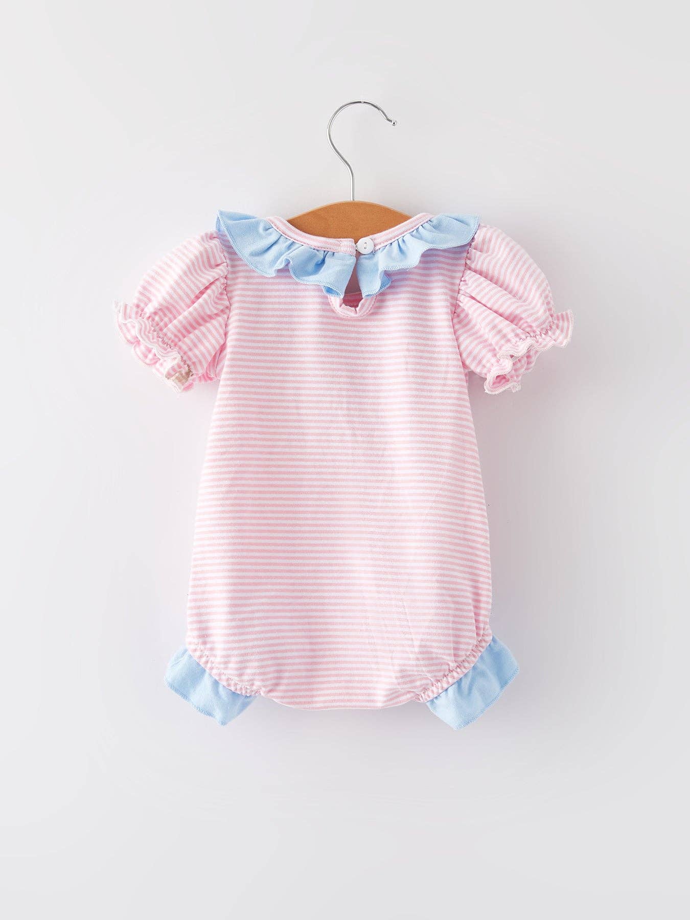 This Easter, dress your little princess in our adorable Girls Pink Stripe Romper featuring a charming Easter Bunny embroidery. Made with soft, comfortable fabric, it's perfect for an egg hunt or springtime festivities. Brighten up your little one's day and capture precious memories with this delightful romper!