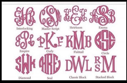 Please add Font name, Initials (first, last, middle order) and Thread color preference in notes.