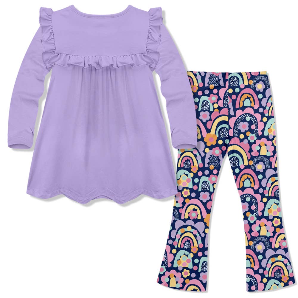 Orchid Petal Ruffle Top & Rainbow Flare Leggings