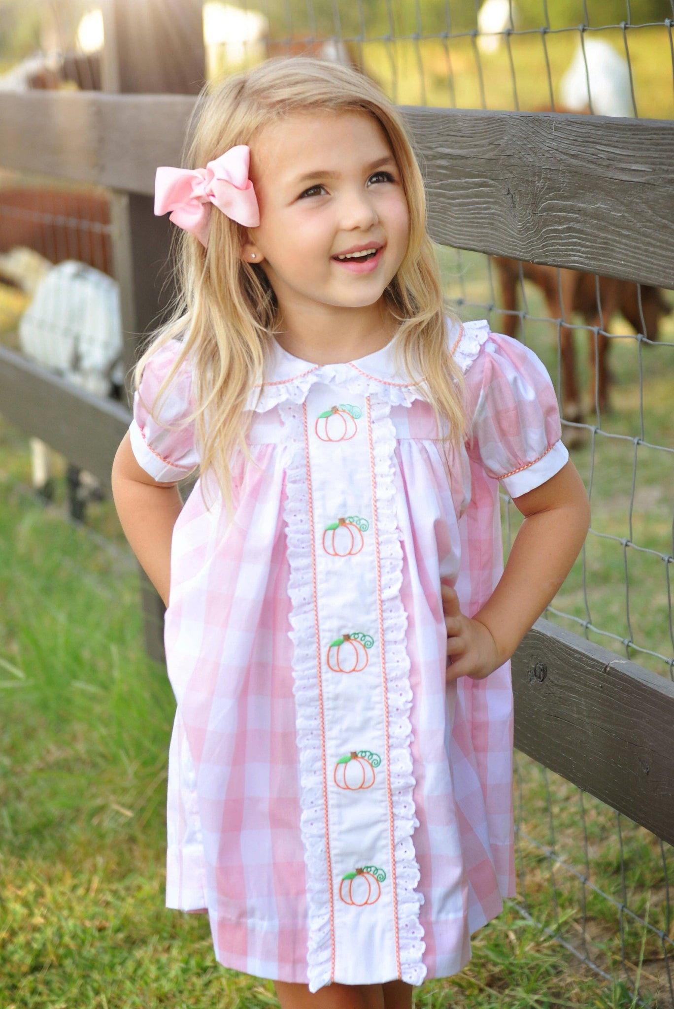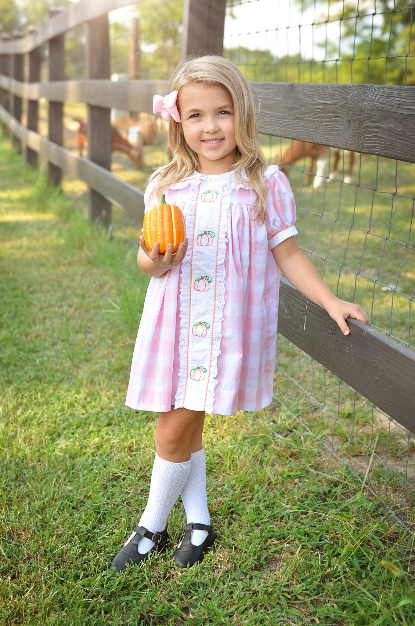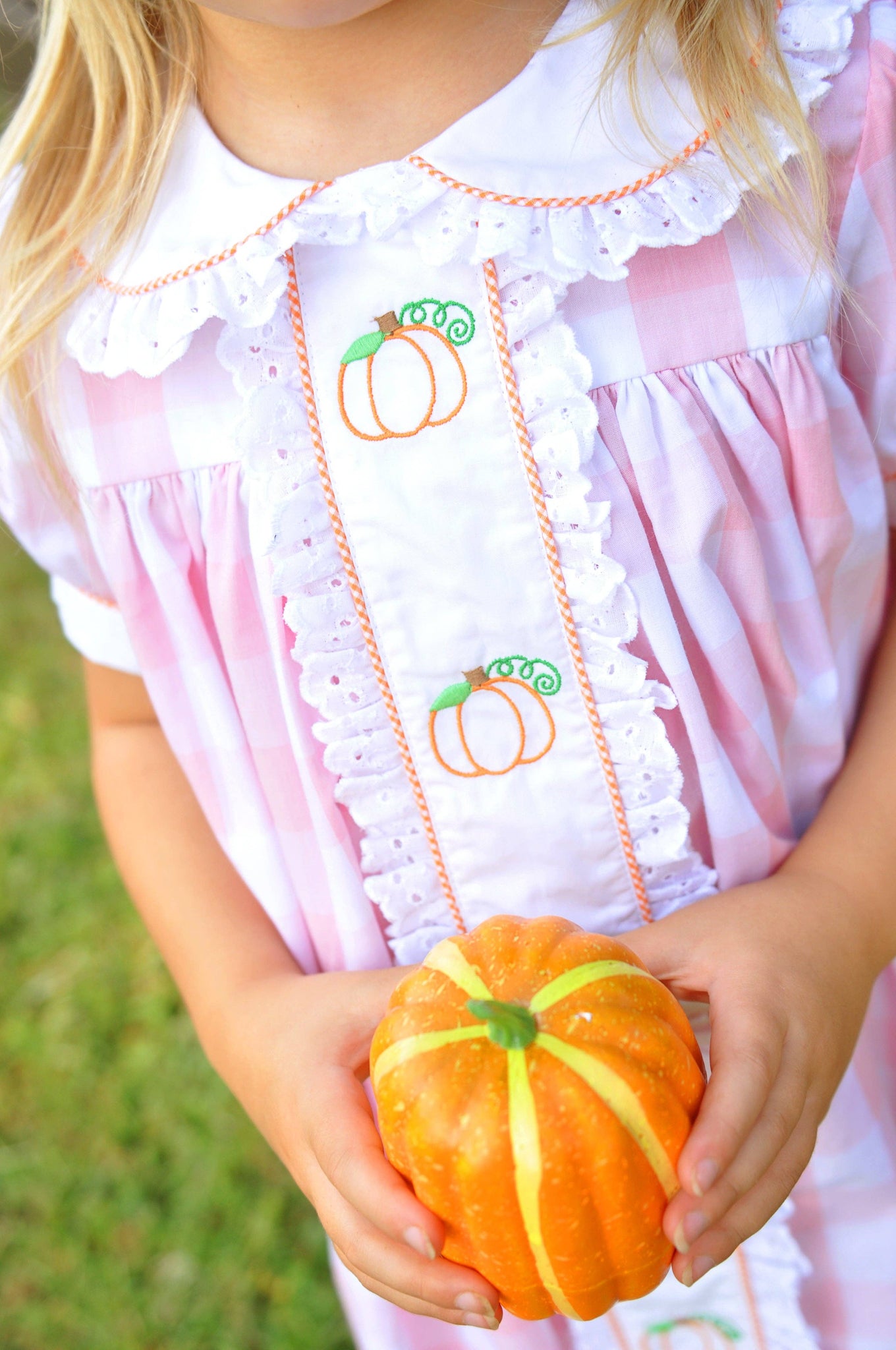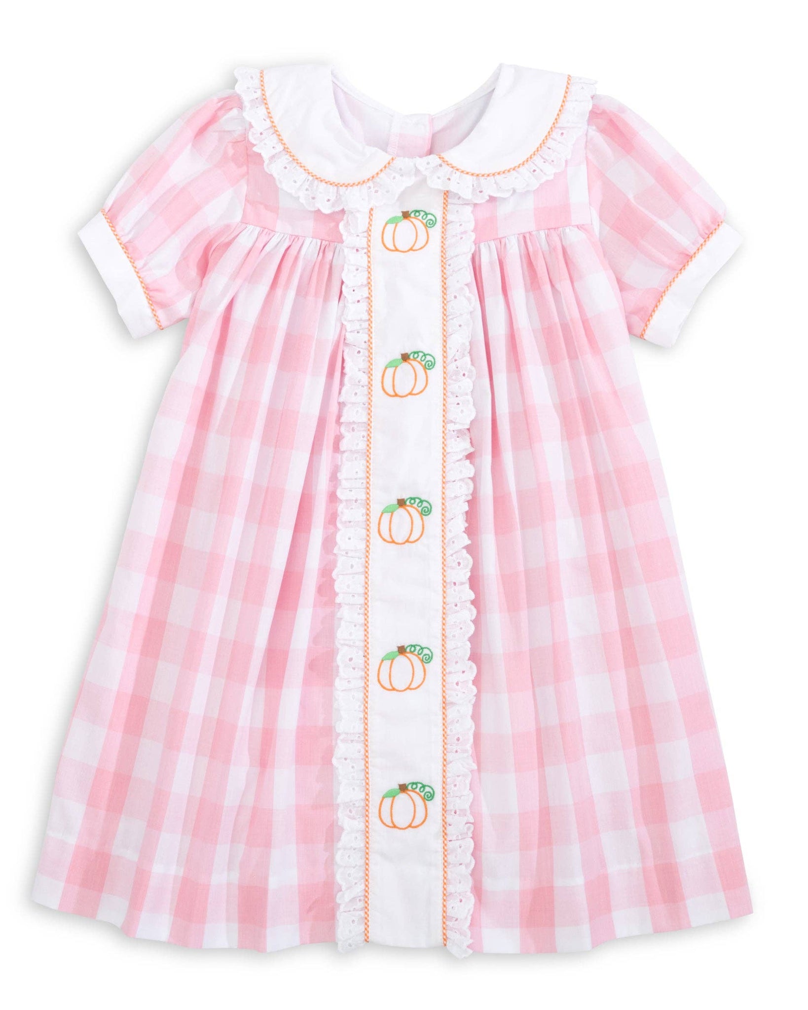 Proper Pumpkins Pink Gingham A-Line Dress with Pumpkin Embroidery: 2T
