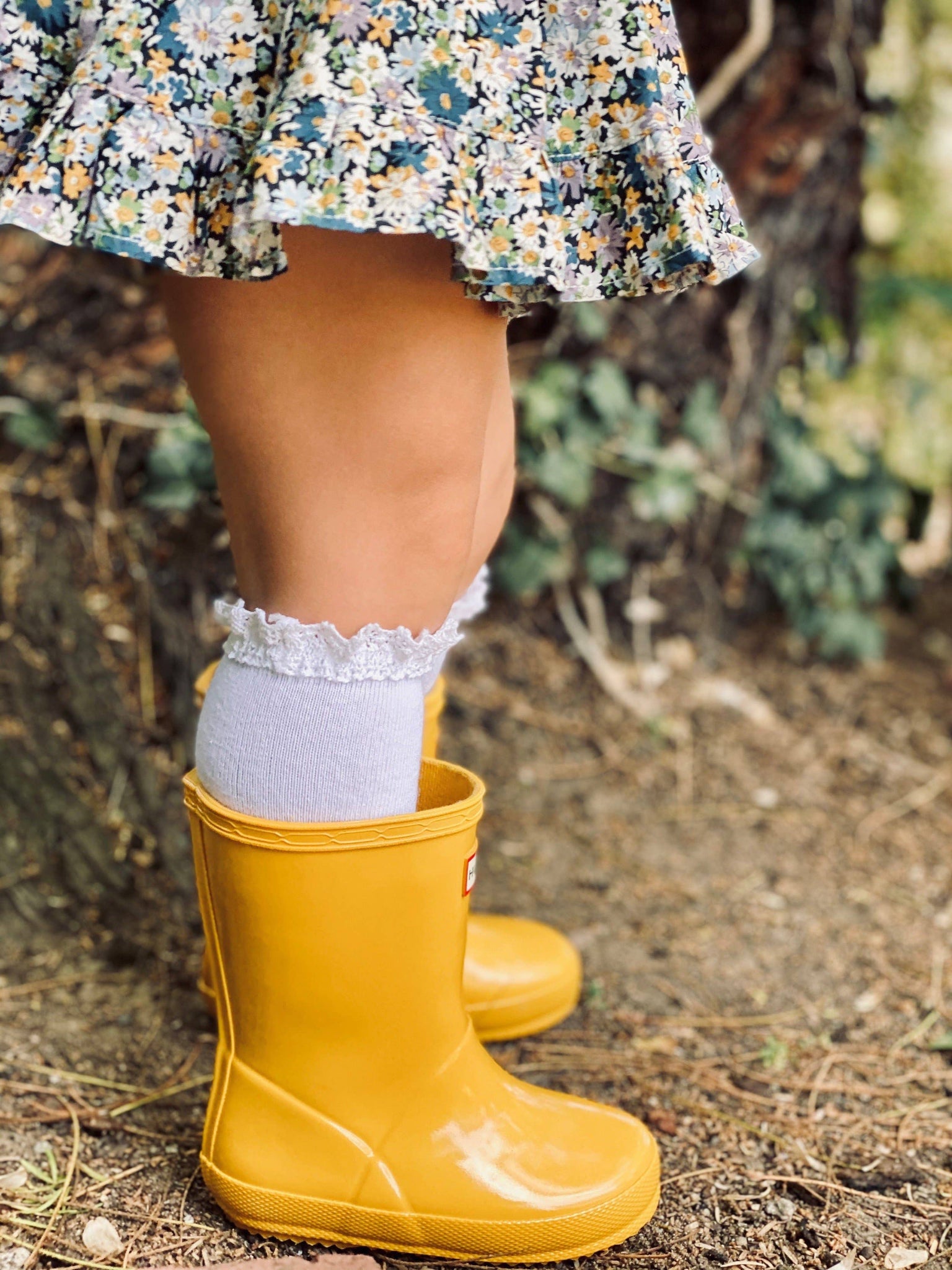 White Lace Top Knee Highs for babies, toddlers and girls! These vintage inspired knee high socks are perfect for all of her girlhood adventures. Machine wash cold with like colors. Tumble dry low or lay flat to dry. 76% cotton / 22% polyester / 2% spandex Imported.