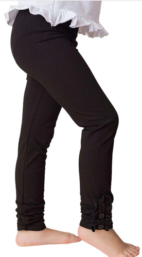 Ruffle Button Leggings-Black