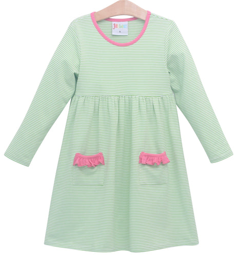 Pocket Dress lime stripe & hot pink Trim