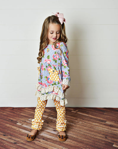 Girls Purple Floral & Mustard Polka Dot Fall Set