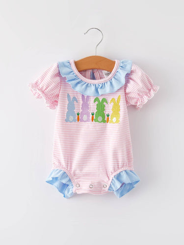Easter Bunny Embroidery Girls Pink Stripe Romper