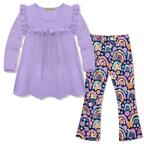 Orchid Petal Ruffle Top & Rainbow Flare Leggings
