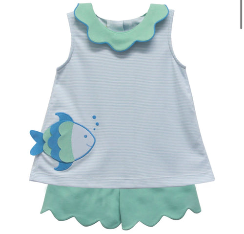Fish Alice short set knit bitty light blue sleeveless