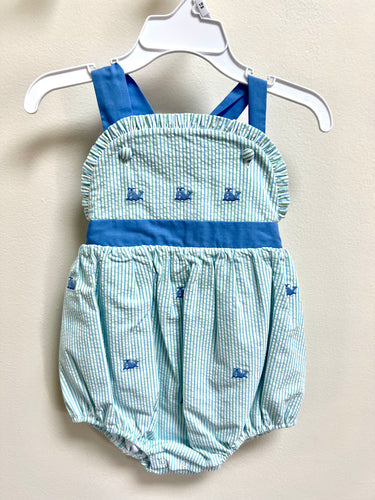 Whale bibble bubble seersucker stripe mint & light blue sleveless