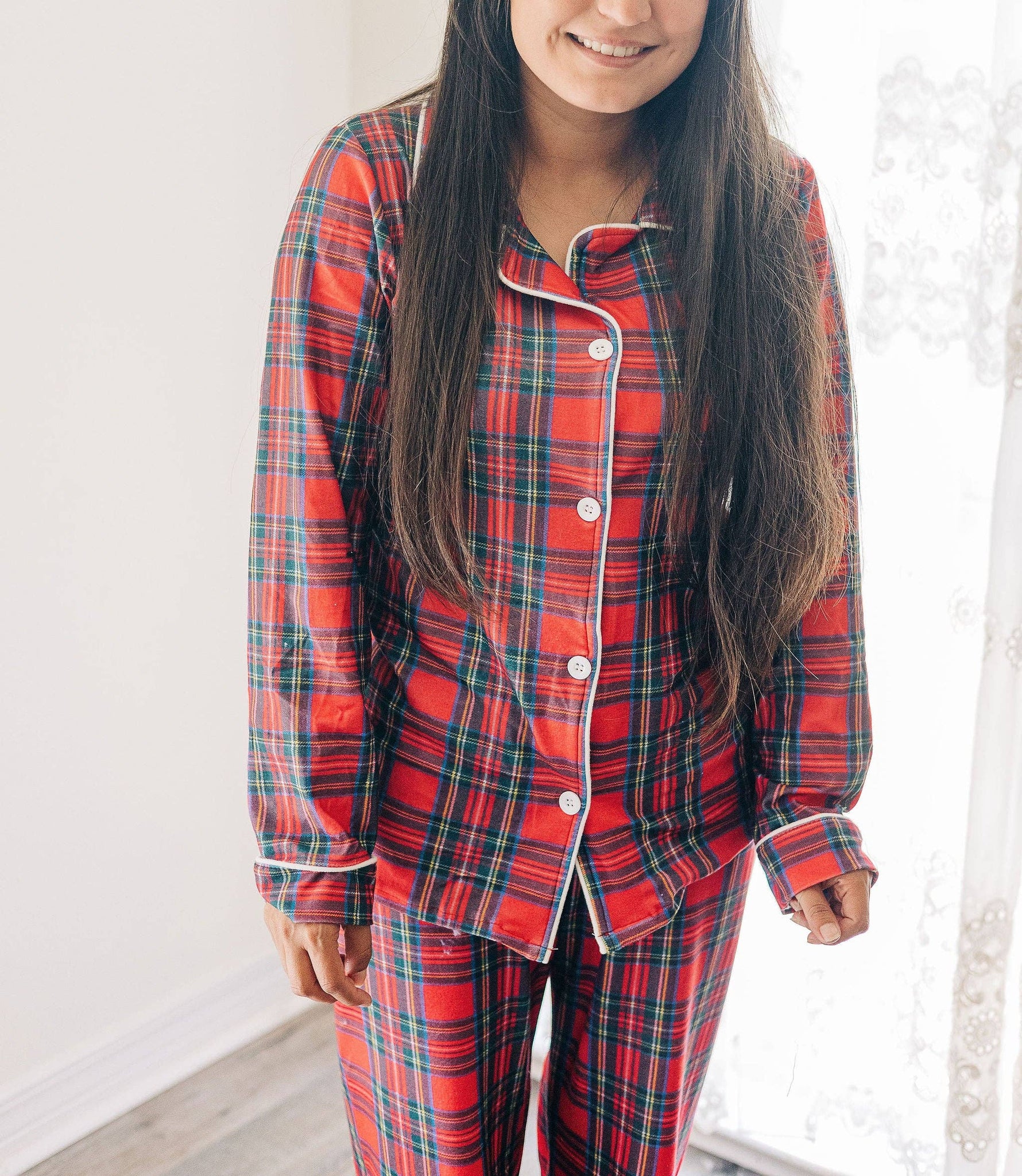 Family Christmas Pajamas - Button Down PJ - Christmas Tartan: XL