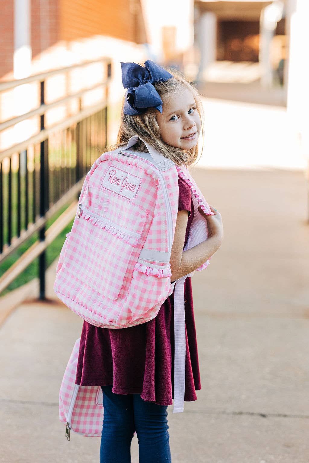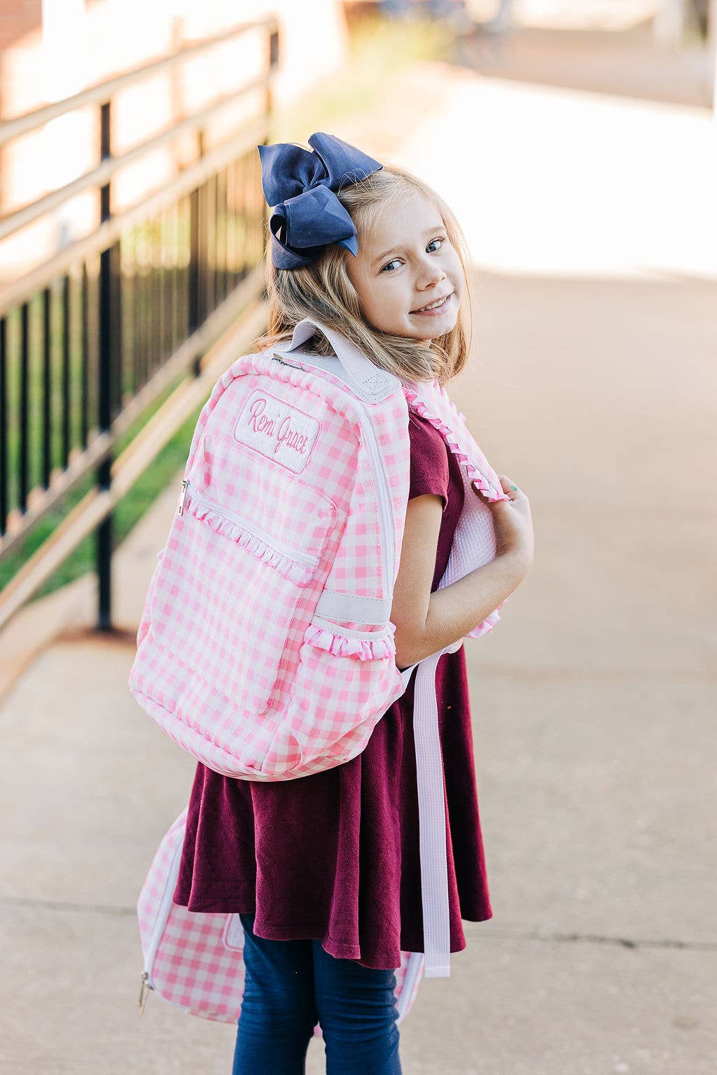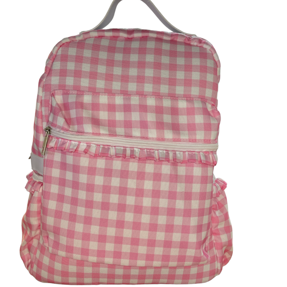 • Load image into Gallery viewer, Pink Gingham Ruffles Backpack