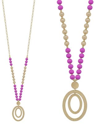 Pink and Gold Beaded with Double Oval Gold Drop Necklace