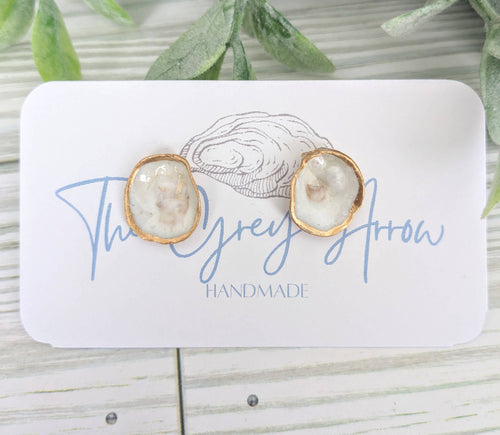 Oyster Shell Statement Stud Earrings, Gold Oyster Jewelry