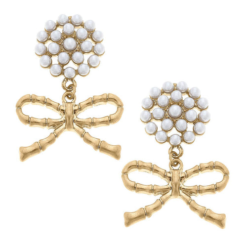 Lena Bamboo Bow with Pearl Cluster Earrings in Worn Gold