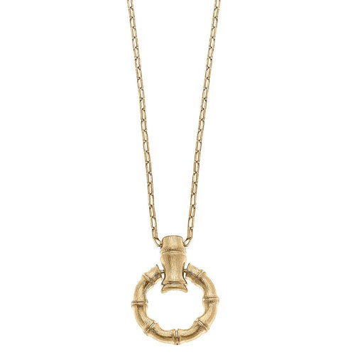 Nova Bamboo Pendant Statement Necklace in Worn Gold