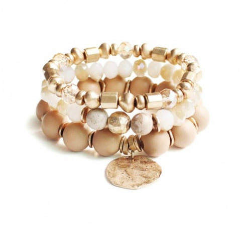 Wood & Bone Bead Necklace w/ White Bone Crescent Pendant